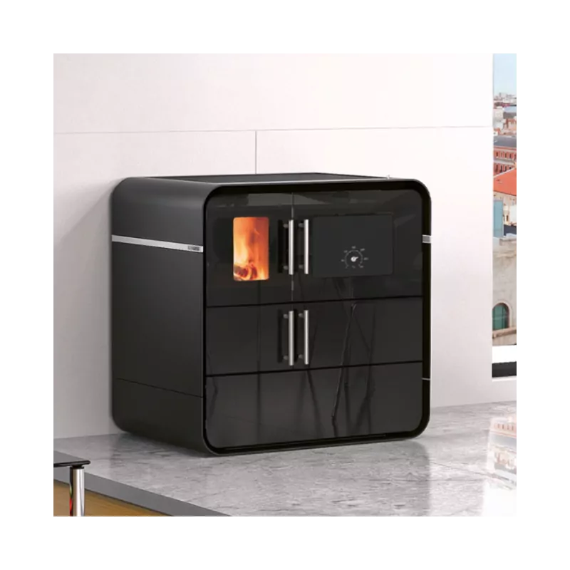 La plaque de cuisson en vitro-céramique et le four permettent une cuisson réussie de tous vos plats. Le foyer, habillé de vermiculite, favorise une combustion plus efficace et une meilleure diffusion de la chaleur dans votre intérieur. De plus, un mécanisme de sécurité pour le verrouillage vous assure une fermeture facile et sûre des portes du four et du foyer.