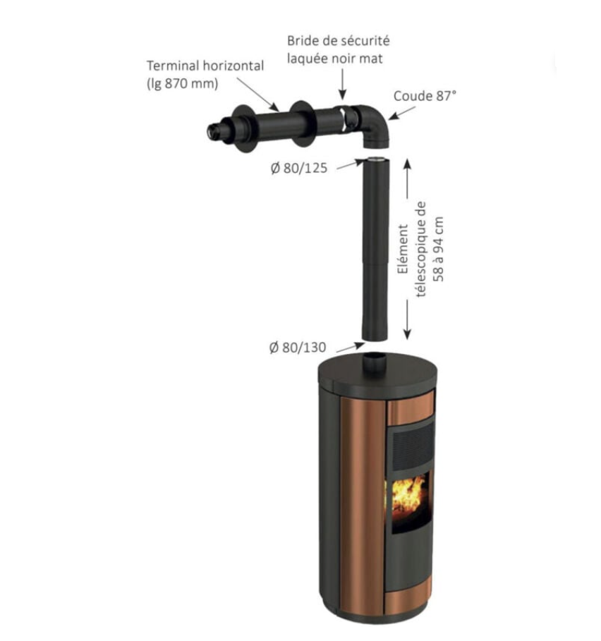 Kit façade Bioten 80/130 départ dessus pour poêles à pellet